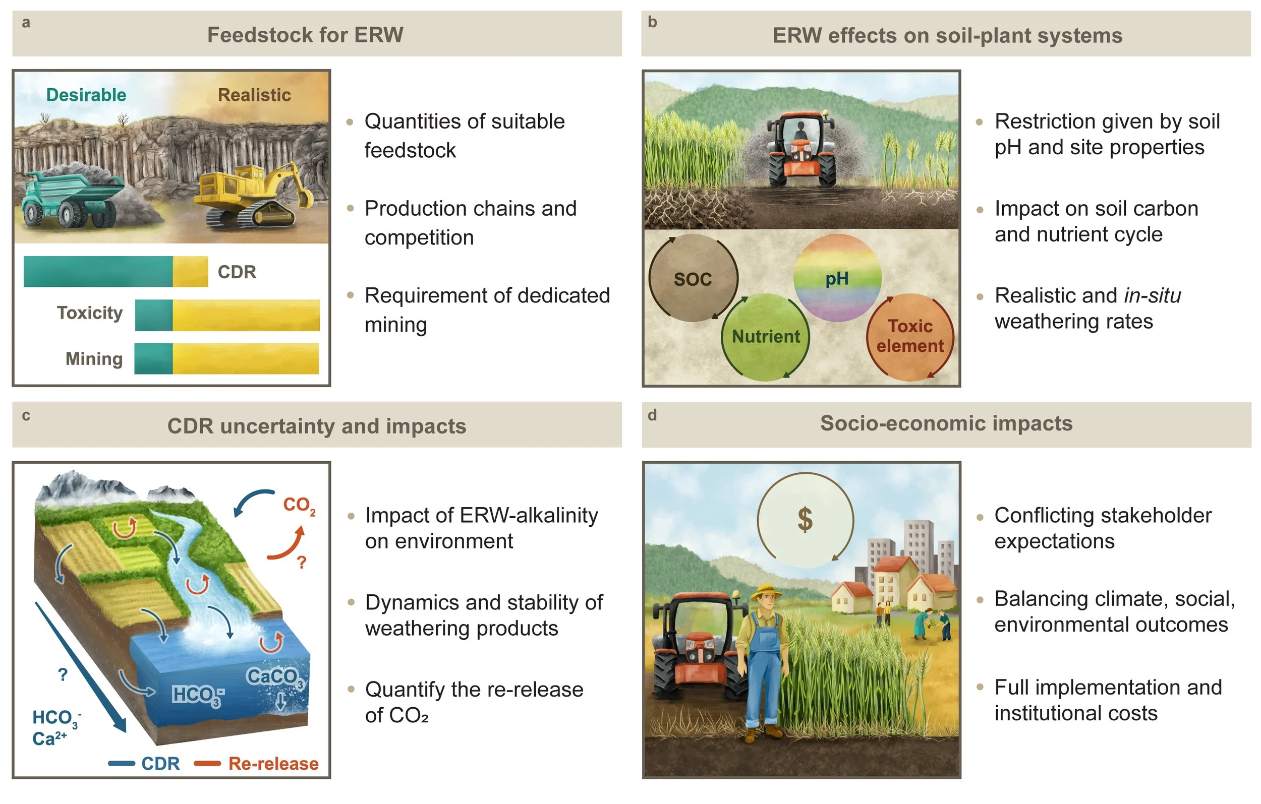 Figure for perspective paper about pitfalls and uncertainties of enhanced rock weathering for climate change mitigation